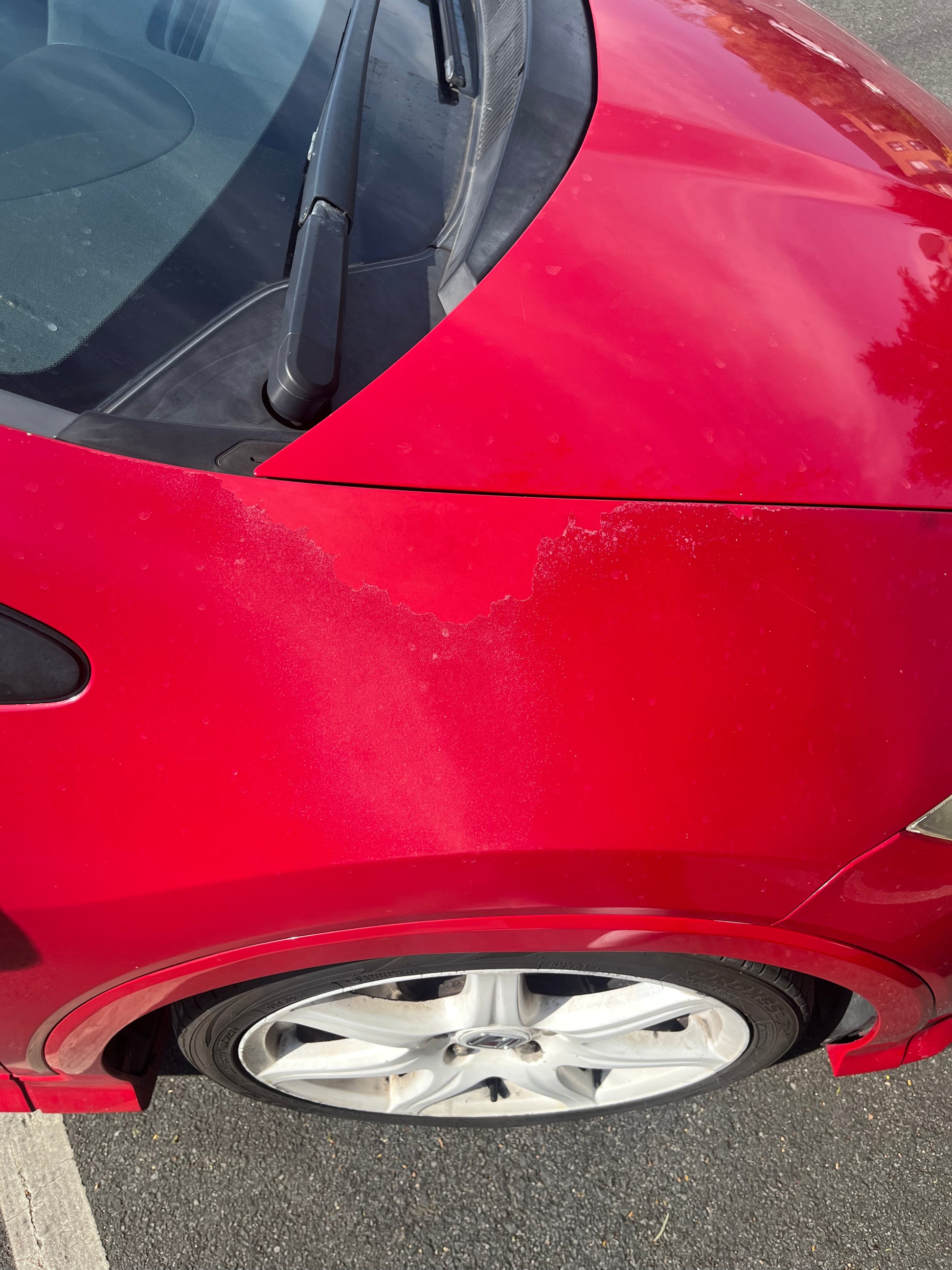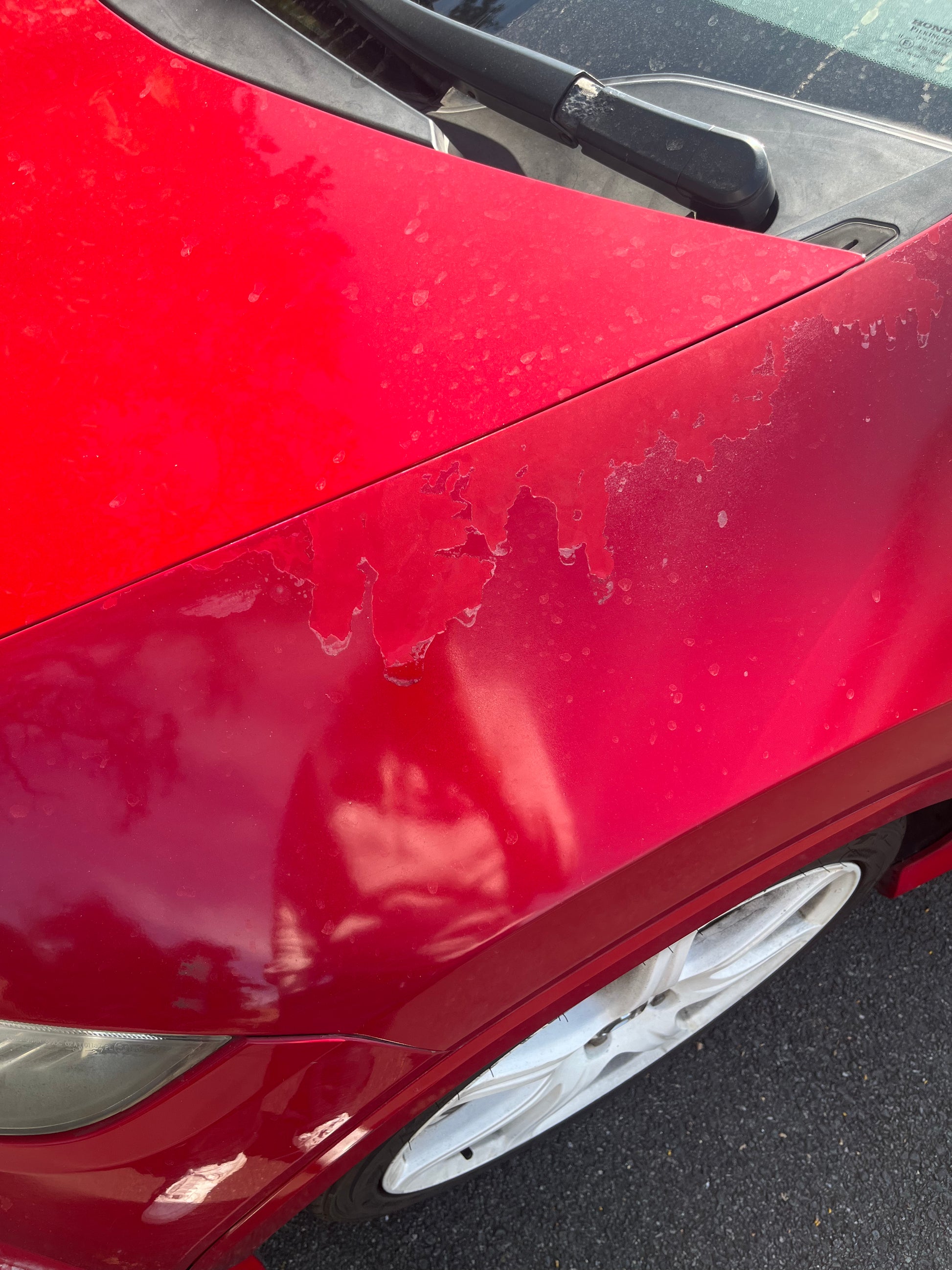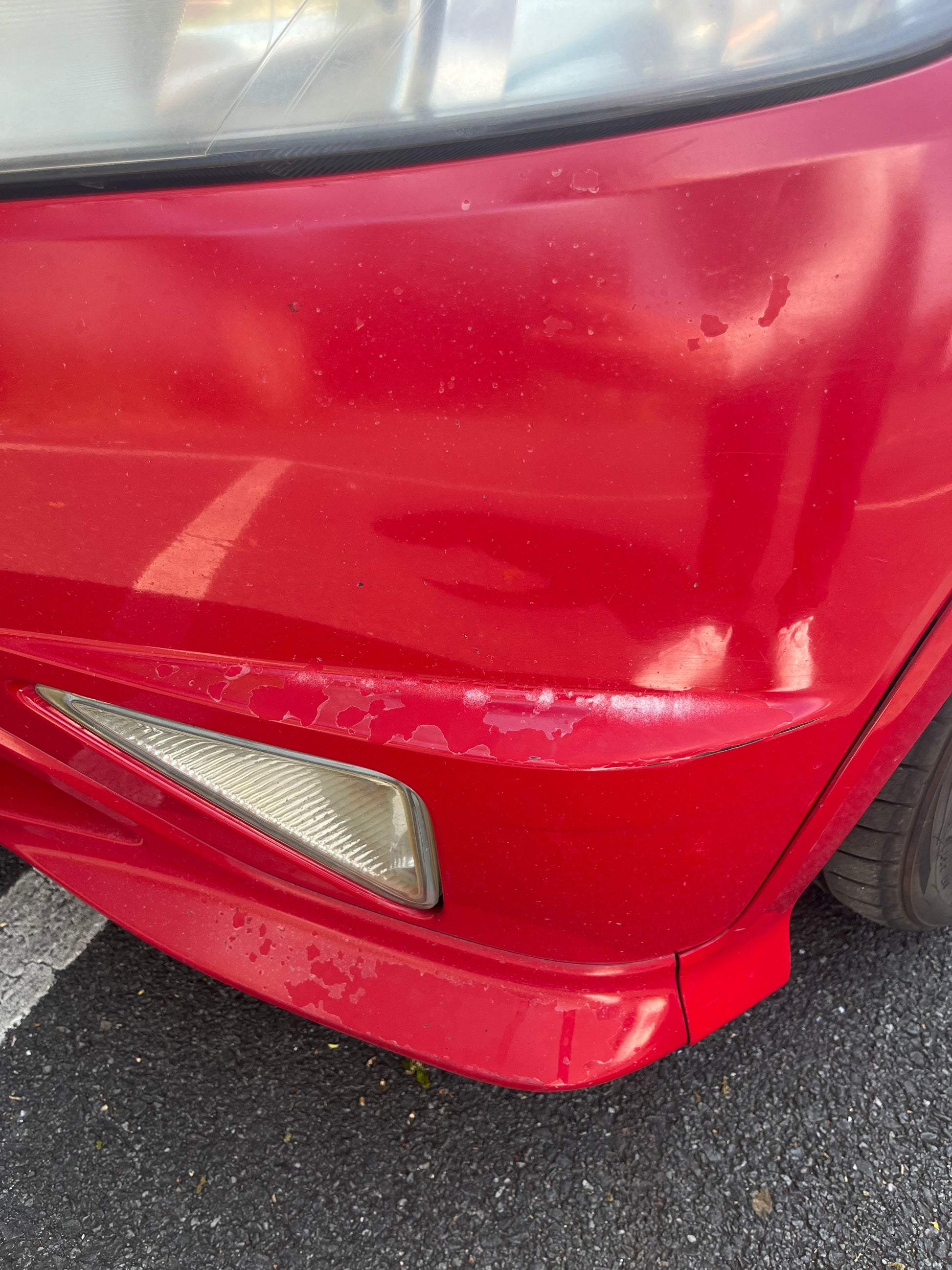 Malheureusement, la peinture est en mauvais état (ce qui est courant sur les voitures rouges). Rouille minime en dessous.