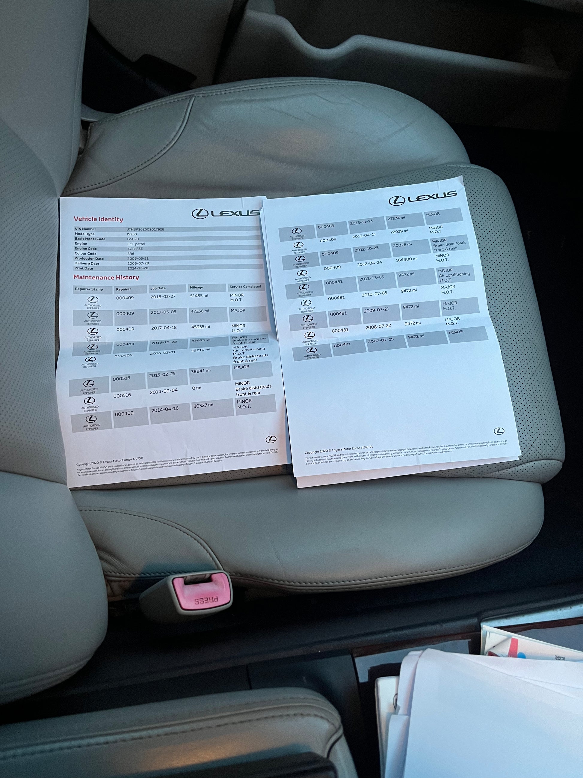 Historique d'entretien jusqu'en 2018 chez Lexus
